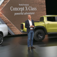 Daimler-Chef Dr. Dieter Zetsche bei der Vorstellung der Concept X-Class, die Ende 2017 als X-Klasse auf den Markt kommen wird. "Pickups waren ursprünglich ein Markt, der tatsächlich für den Nutzen eingesetzt wurde. Dort wurden Dinge transportiert, ist man in erster Linie offroad unterwegs gewesen, auf dem Land. Das gilt nach wie vor, aber inzwischen werden diese Fahrzeuge doch immer stärker auch im Lifestyle-Segment eingesetzt, so wie wir es mit Geländewagen vor langer Zeit schon erlebt haben, sehen wir etwas Ähnliches jetzt im Pickup-Segment. Und da ist natürlich eine Premiumposition praktisch zwangsläufig."