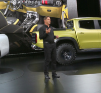 Daimler Chefdesigner Gorden Wagener outete sich gestern als echter Pickup-Fan: "Pickups sind einfach cool. Das sind die neuen coolen Autos nach den SUVs für die wirklich toughen guys and girls on this planet. Und sie sind eben auch super funktional weil ich kann hinten was auf's Truckbett legen. Für mich ist das wirklich ein moderner Brandshaper, der zeigt, wie sehr sich diese Marke auch wandeln kann. Aber natürlich immer mit dem Ansatz, den Mercedes der Pickups zu machen."
