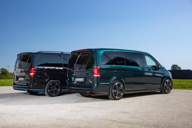 Die in Neuss beheimateten Techniker und Stylisten von VANSPORTS.DE – seit Jahren anerkannte Experten für die Veredelung und Individualisierung der Großraumer mit dem Stern – rüsteten sowohl einen Vito als auch ein Exemplar der etwas nobleren V-Klasse mit ihrem für mehr Dynamik sorgenden VP Spirit-Aerodynamik-Kit aus. Dieser umfasst eine Frontspoilerlippe, Seitenschweller, eine Heckschürze sowie einen Dachspoiler.