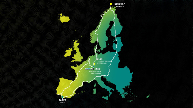 Offizieller Tourstart war am 11. Juni in Frankfurt am Main. Nach ihrer Reise in Richtung Norden durch Deutschland, Dänemark und Schweden, haben die beiden Trucks pünktlich zu Mittsommer das erste große Etappen-Highlight erreicht: das Nordkap in Norwegen, den nördlichsten auf dem Straßenweg erreichbaren Punkt Europas. Ab Ende Juni ging es für den Konvoi weiter in Richtung Süden durch Finnland, Estland, Lettland, Litauen, Polen, Tschechien, Österreich, Slowakei, Ungarn, Kroatien, Slowenien, Italien, Frankreich und Spanien. Nach einem Stopp im spanischen Tarifa, dem südlichsten Ort auf dem europäischen Festland als nächstes großes Tour-Highlight, führte die Reise erneut in Richtung Norden – durch Portugal, Frankreich, Belgien, Niederlande und Luxemburg zurück nach Deutschland.
