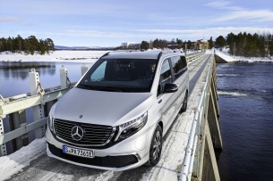 Ebenso unabdingbar ist ein zuverlässiges Handling bei Eis und Schnee. Bei den Versuchsfahrten beweist der EQV, dass die tiefe und zentrale Anordnung der Lithium-Ionen-Batterie im Unterboden gerade unter winterlichen Bedingungen positive Auswirkungen auf das Fahrverhalten hat. Das Fazit der Tester: "Der EQV ist fit für den Kundeneinsatz – auch im arktischen Umfeld." Aber wie fit genau ist er denn, wenn es eisig wird? Der EQV 300 soll mit seiner 90-kWh-Batterie nach NEFZ etwa 418 Kilometer fahren können, sagt der Hersteller. So weit. So gut. Interessant zu erfahren wäre allerdings auch gewesen, wie bei der extremen Kälte der unvermeidliche Reichweitenverlust, der sich bei vollelektrisch angetrieben Autos unter winterlichen Bedingungen naturgemäß einstellt, im Detail ausgefallen ist.