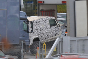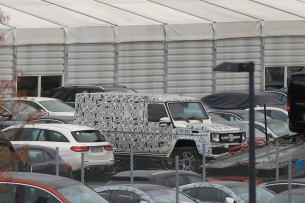 Mercedes arbeitet derzeit an einer breiteren G-Klasse. Mehrere Prototypen haben wir in den vergangenen Monaten erwischt. Jetzt ist uns aber was neues vor die Kamera gekommen. Nämlich ein voll getarnter Mercedes G 4x42 mit längerem Radstand und ohne hintere Seitenfenster. Dieser G 4x42 Prototyp dürfte die Länge des G 6x6 haben. Hinter der Fahrer- und Beifahrertür erkennt man einen sehr eckigen Aufbau ohne irgendwelche Fenster oder Türen. An der Front erkennt man ebenfalls ein paar Änderungen am Kühlergrill und an den Lufteinlässen in der Stoßstange. (S.Baldauuf / SB Medien)