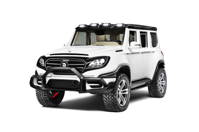 Die Leistung des 5.461 ccm großen Vau-Acht hat Ares auf 760 PS gesteigert. Das soll für eine Höchstgeschwindigkeit von 250 km/h reichen. Trotz seiner schieren Größe soll der X-Raid sogar rund 200 Kilogramm weniger wiegen als die Ausgangsbasis. Eine ziemlich gerundete Karosserie aus Carbon und Alu soll es möglich machen. Auf dem Dach sitzt eine Light-Bar, die Frontpartie ziert ein Bullenfänger. Damit der Wagen auch einen standesgemäßen Auftritt hat, rollt er auf geschmiedeten 22 Zoll Felgen mit Reifendruck-Kontrollsystem. Auch drinnen ist der G weniger kantig als das Ausgangsprodukt. Das Cockpit-Design ist deutlich rundlicher, Ares verpasst dem Allradler ein Sportlenkrad, reichlich Nappa-Leder, zwei Einzelsitze und einen Infotainment-Bildschirm im Heck. Der Preis für so ein Einzelstück liegt aktuell bei über 460.000 Euro - wobei die Skala nach oben offen sein dürfte. Fotos: Ares