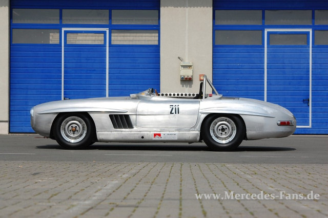 So entsteht der Mercedes-Benz 300 SLS, ein „speziell mit hoher Leistung und geringem Gewicht hergerichteter“ (Nallinger) 300 SL Roadster (W 198 II). Die in zwei Exemplaren gebaute Sonderausführung wiegt nur noch 970 Kilogramm (Serie: 1.330 Kilogramm) und hat eine Motorleistung von 173 kW/235 PS (Serie: 158 kW/215 PS). Äußerlich ist der 300 SLS an den fehlenden Stoßstangen, einer speziell geformten Cockpitabdeckung mit Lufteinlassschlitz, der schmalen Renn-Windschutzscheibe und dem Überrollbügel hinter dem Fahrersitz zu erkennen. Die Rechnung der Stuttgarter Strategen geht perfekt auf: Paul O'Shea gewinnt im Jahr 1957 zum dritten Mal in Folge den Titel des US-amerikanischen Sportwagenmeisters.