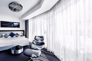 Schöner wohnen mit nur einem Stern? Wenn der richtige Stern – eben der von Mercedes-Benz - involviert ist, dann klappt`s auch mit dem Wohlgefühl in den vier Wänden. Wohnqualität auf Premiumniveau gehört nämlich auch zur Luxuswelt von Mercedes-Benz Style – wobei die neuen, gemeinsam mit der Frasers Hospitality Group, einem der weltweit führenden Anbieter von Luxus-Appartements mit Servicedienstleistungen, errichteten Premium-Business-Appartements keine fünf Sterne, sondern nur einen Mercedes-Stern brauchen. Die neun Mercedes-Benz Living @ Fraser Apartments in Singapur wurden von Mercedes-Benz Style in Zusammenarbeit mit den Inneneinrichtungsspezialisten von JOI Design Hamburg gestaltet und ausgestattet und im April fertiggestellt