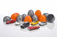 Etwas kleiner aber dafür günstiger sind die Original "Mercedes-Benz Überraschungs-Ei Mini-Flitzer". 7,50 € kostet ein Mercedes-Benz Überraschungs-Ei. Es gibt insgesamt sechs verschiedene Miniflitzer aus Druckguß im Maßstab von 1:60. Welches Modell wo drin ist? Das weiß keiner. Erst die Öffnung des Eis bringt das Modell an den Tag. Und hinterher ist man immer schlauer. Vorher ist nur eines gewiss: Hier kommt auch bei Erwachsenen wieder Spannung bei der Eiersuche auf. Erhältlich sind die Mercedes-Benz Überraschungs-Ei Mini-Flitzer" bei dem ein oder anderen Mercedes-Benz Partner oder HIER im offiziellen Mercedes-Benz Classic Store. Wer im Online-Shop bestellen will, darf nicht zu lang überlegen, denn die Lieferzeit beträgt mindestens zwei Werktage. Und bitte beachten: Auch wenn diese Ostergeschenke sooooo süß aussehen, sind sie nicht zum Vernaschen gemacht! (Bilder: Busch (1), Daimler (3)