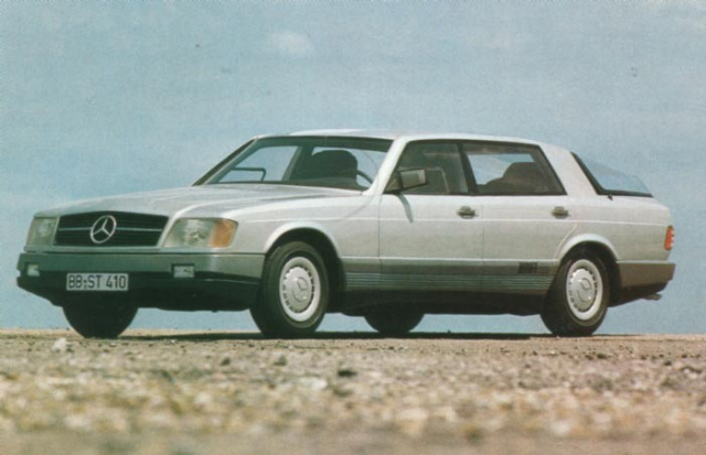 Das Mercedes-Benz Auto 2000 wurde im Jahr 1981 erstmalig auf der IAA Frankfurt gezeigt. Das Fahrzeug ist die Antwort auf den Aufruf der Bundesregierung nach einem Auto mit möglichst wenig Kraftstoff ein Blick in die Zukunft. Das Forschungsfahrzeug bietet auf einer Plattform drei verschiedene Antriebskonzepte: Sowohl der V8 Benziner als auch der hier gezeigte V6 Turbodiesel und die Variante mit Gasturbinenantrieb unterschreiten die gesetzte Verbrauchsgrenze von maximal elf Litern auf 100 Kilometern, für damalige Verhältnisse ein äußerst niedriger Wert für ein Fahrzeug dieser Größe.