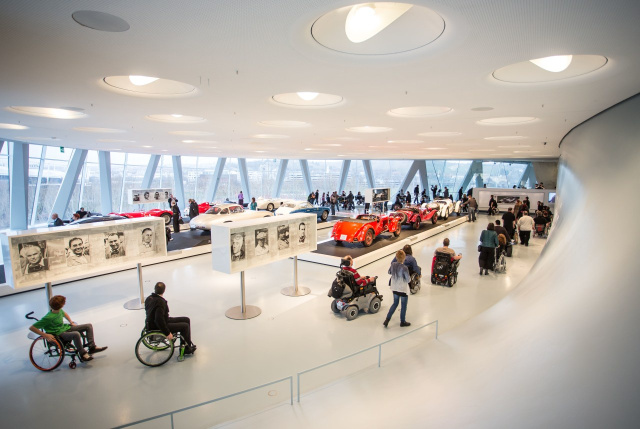 Menschen mit Handicap sind im Mercedes-Benz Museum stets willkommene Gäste. Dafür spricht allein die Gestaltung von Gebäude und Dauerausstellung. So können mobilitätseingeschränkte Besucher direkt von reservierten Parkplätzen im Parkhaus oder über den Haupteingang barrierefrei ins Museum gelangen. Dort ermöglichen Rampen und Aufzüge den Zugang zu sämtlichen Ebenen und Bereichen. Rollstühle und Rollatoren können die Gäste direkt im Museum ausleihen. Zudem gibt es Informationsmaterial in Blindenschrift über das Mercedes-Benz Museum und die Exponate. Für seine Barrierefreiheit wurde das Museum bereits ein Jahr nach der Eröffnung mit dem Architekturpreis „Beispielhaftes Barrierefreies Bauen“ ausgezeichnet. Sechs Jahre später verlieh dann der Verein ABS – Zentrum für selbstbestimmtes Leben behinderter Menschen Stuttgart e.V. dem Museum den Preis „Goldener Rollstuhl“.