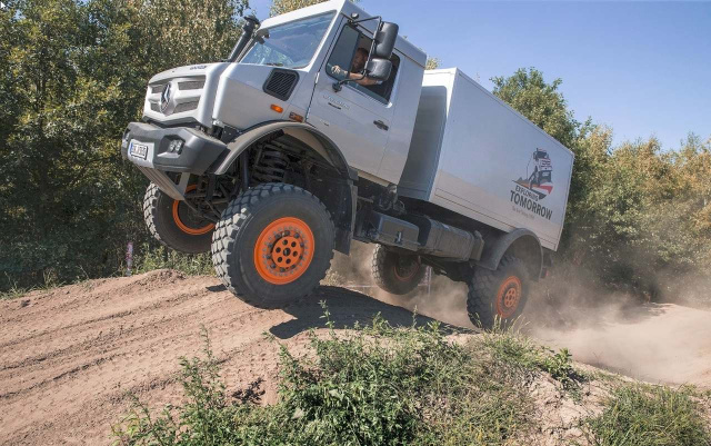 Ein echter Hingucker ist der leistungsgesteigerte Unimog U 5030 mit dem GFK-Sportaufbau. Mercedes-Benz bietet in Kooperation mit dem Umbaupartner Hellgeth engineering Spezialfahrzeugbau GmbH das besondere Unimog Modell mit noch mehr Leistung an: den U 5030 mit Sechszylindermotor mit 220 kW/ 299 PS aus 7,7 l Hubraum und einem maximalen Drehmoment von 1200 Nm statt serienmäßig 900 Nm. Zur Steigerung der Traktion verfügt er zudem über einen permanenten Allradantrieb. Der veränderte Antriebsstrang sorgt für noch mehr Dynamik im Gelände. Auf Wunsch ist eine individuelle Fahrwerkskonfiguration in Abhängigkeit vom Einsatzzweck möglich, zum Beispiel für den Einsatz als Expeditions- oder sportliches Rallyefahrzeug.