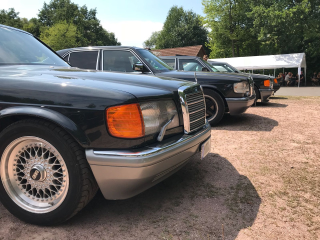 Hervorzuheben ist an diesem Treffen, dass es den Mercedes-Freunden Unterfranken gelungen ist, einen weiten Bogen vom original erhaltenen oder aufgebauten Oldtimer bis hin zum aktuellen Fahrzeug mit teils sehr extremem Tuning zu spannen. Und vom Schüler bis zum Rentner. So waren unter den 85 Fahrzeugen auf dem Platz Oldtimer – sogar hochwertige Preziosen vom Schlage eines Mercedes 190SL oder Ponton Coupé – aber auch aktuelle getunte Fahrzeuge, die bewiesen, dass auch ein AMG nur als Basis für eine Waffe auf vier Rädern betrachtet werden kann. Oder dass man sich bei AMG auf Basis eines ganz normalen Mercedes einen Wolf im Schafspelz bauen lassen kann. Auch der ein oder andere HiFi-Ausbau konnte bewundert werden.