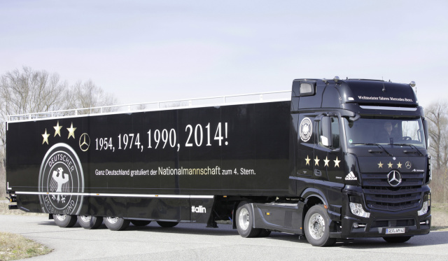 Anlässlich der Fußball-Europameisterschaft EURO 2016 präsentieren wir hier auf Mercedes-Fans.de ein glanzvolles Highlight aus dem Jahre 2014: Der Truck mit dem die „Helden von Rio“ am Dienstag nach der Weltmeisterschaft unter dem Jubel von Tausenden über die Berliner Fan-Meile zum Brandenburger Tor fuhren.