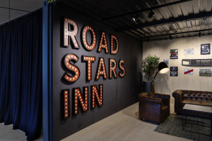 Mit 1.400 Quadratmetern ist die Truck Lounge der größte gestaltete Raum im Customer Experience Center. Die bisherigen Flächen des „Restaurants am See“ wurde vollständig neu konzipiert: Eine zentrale Rotunde mit integrierter Barista-Bar bildet das Herzstück, ergänzt durch ein frisches Möblierungskonzept und modernes Lichtdesign. Tische und Sitzbereiche sind entlang von vier ausgewählten Lkw Exponaten angeordnet, wodurch Gäste beim Essen oder Arbeiten unmittelbar Teil der Markenwelt werden. Ein Container im Stil des „RoadStars Inn“ das optisch und thematisch an die Mercedes-Benz Trucks Community RoadStars angelehnt ist, greift die Optik eines Fernfahrer-Rast- oder Zwischenstopps auf – ähnlich einem kleinen Café oder Clubhouse und schlägt so eine Brücke zwischen dem Alltag von Berufskraftfahrern und dem Markenerlebnis vor Ort im CEC.
