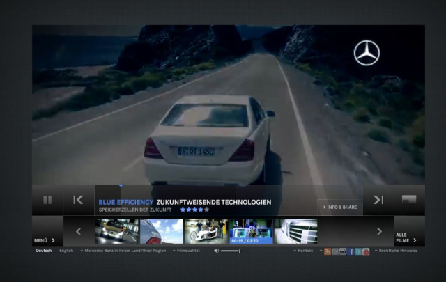 In Speicherzellen der Zukunft stellt Mercedes-Benz.TV die Energiespeicher der Lithium-Ionen-Technologie, die weltweit erstmals in ein Serienfahrzeug integriert wurden, vor. Inside BlueEFFICIENCY beschäftigt sich mit der neuen E-Klasse, die Maßstäbe in Komfort und Sicherheit setzt, dabei steht mit BlueEFFICIENCY die Effizienz der Limousine im besonderem Fokus der Entwickler.