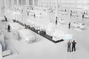 Dabei sind Maschinen und Anlagen miteinander vernetzt. Ausgewählte Montageanlagen und die Fördertechnik werden Internet of Things-fähig. Die Basis dafür bildet ein leistungsfähiges WLAN- und Mobilfunknetz. Erstmals soll in Pilotanwendungen der Einsatz der leistungsstarken 5G-Mobilfunktechnologie in der Montage getestet werden. Die Montagehalle wird komplett papierlos gestaltet. Die Mitarbeiter arbeiten mit Monitoren und Personal Digital Assistants (PDA). Zur Belieferung der Montagestationen werden flächendeckend Warenkörbe eingesetzt, die in einer sogenannten Pickzone mit Hilfe von intelligenten Picksystemen mit den benötigten Materialien bestückt werden. Insgesamt sind 300 Fahrerlose Transportsysteme im Einsatz. „Entstehende Daten werden gesammelt und mittels ‚Big Data‘ -Technologie ausgewertet. Die Erkenntnisse fließen direkt wieder zurück in die Produktion. Wir können damit bestehende Prozesse verbessern und zum Beispiel per ‚Predictive Maintenance‘ Anlagenstörungen vermeiden. Damit erhöhen wir unsere Betriebsnutzungszeiten und verbessern den Reifegrad von Anfang an“, betont Schäfer.