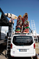 So einen Hochstapler lassen wir uns gefallen: 7.500 Besucher des 13. SURF-Festival auf der Ostseeinsel Fehmarn wurden zu Augenzeugen, als der der 16-fache Deutsche Meister im Windsurfen, Bernd Flessner, 30 Windsurfbretter auf das Dach seiner Mercedes-Benz V-Klasse packte. Windsurf-Legende Bernd Flessner begutachtete die nicht ganz ernst gemeinte Beladungsmethode und war begeistert: „Ich war mir sicher, dass meine V-Klasse und ich diesen Rekord schaffen würden.“ Man sieht, die V-Klasse nimmt jede Herausforderung an, hält ungewöhnlichen Belastungen stand und überwindet die natürlichen Grenzen eines Pkw.