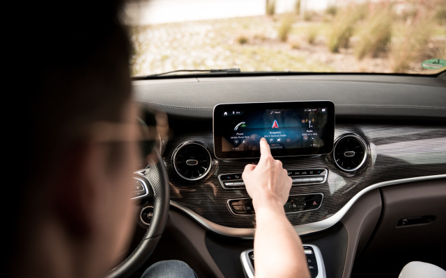 Herzstück des Multimediasystems MBUX ist das intuitive Bedienkonzept, allen voran die Sprachsteuerung. Sie verfügt über ein hohes Sprachverständnis und erkennt nahezu alle Sätze aus dem Infotainmentbereich und der Fahrzeugbedienung. Neben der Sprachassistenz gehört zum Bedienkonzept der hochauflösende, 7- oder 10,25-Zoll große Touchscreen-Zentraldisplay und das Touchpad auf der Mittelkonsole. Per Berührung können die Inhalte einfach vergrößert oder verschoben werden, besonders praktisch für einen genauen Blick auf die Navikarte. Das Touchpad erkennt zudem Handschrift.