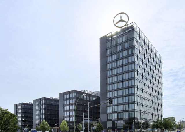 Während am neuen Berliner Hauptstadt-Flughafen noch gebaut wird, wird in der neuen Unternehmenszentrale für den Mercedes-Benz Vertrieb Deutschland in Berlin schon gefeiert. Mit vielen Gästen hat der Mercedes-Benz Vertrieb Deutschland (MBVD) heute seine neue Zentrale im Berliner Stadtteil Friedrichshain eingeweiht. Das aus einem siebengeschossigen Flachbau und einem 14-geschossigen Hochbau bestehende Bürogebäude bietet ab Mitte Juli 1.200 MBVD Mitarbeiterinnen und Mitarbeitern ein hochmodernes und flexibles Arbeitsumfeld. Teile des Gebäudes sind auch für die Öffentlichkeit zugänglich wie ein Mercedes-Benz Showroom, eine Cafeteria und ein öffentliches Restaurant im Erdgeschoss.