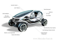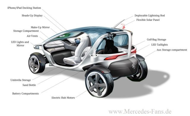 Das Cart verfügt über modernste Technologien. Mit Hilfe von Touch-Screens lassen sich fast alle Funktionen des Carts ohne extra Knöpfe bedienen. Der Schlüssel liegt in der Einfachheit. Vielleicht lässt es sich am besten mit den Begriffen Intuition und pure Form beschreiben, so Margarete Wies, Leiterin des Mercedes-Benz Advanced Design Center Carlsbad, Kalifornien.
