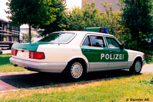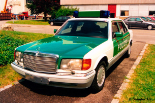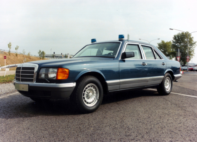 Ein Benz für alle Fälle! Der W126 mit speziellem B-7 Sonderschutz für den Polizeidienst ist ein echter Hingucker. Cooler kann man als Polizist oder Gauner nicht unterwegs sein.
