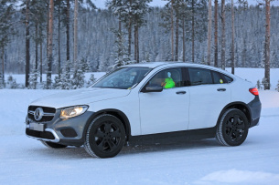 Die Bilder des Mercedes-Fans.de Erlkönigjägers zeigen zwei rein elektrische Versuchsträger mit einem dicken Batteriepack unterhalb der Karosserie bei Wintertests in Skandinavien. Durch die Tarnung am Mercedes-Benz GLC fällt der Batteriepack nicht so sehr auf wie beim Mercedes-Benz GLC Coupe. Der Blick unter die Motorhaube verrät, dass dort bereits kein Verbrennungsmotor mehr verbaut ist, sondern nur reine Elektronik. (Bilder: S. Baldauf / SB Medien)