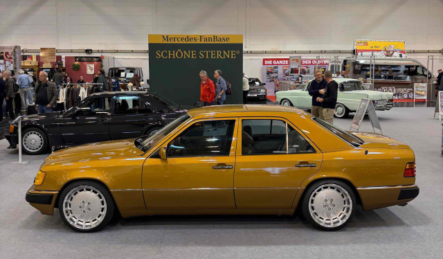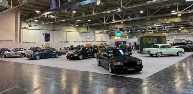 Einen spannenden Ansatz lieferte hier die Mercedes-FanBase in Kooperation mit SCHÖNE STERNE in Halle 1. Auf rund 500 Quadratmetern wurde eine bewusst andere Perspektive auf klassische Fahrzeuge präsentiert. Statt ausschließlich originalgetreuer Restaurierungen standen individualisierte Fahrzeuge im Fokus – also Klassiker, die durch zeitgenössisches Tuning und persönliche Handschrift geprägt sind.