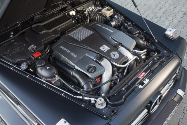 Der neue Achtzylinder des G 500 kann auf exklusive Gene verweisen. Er basiert auf der neuen, von Mercedes-AMG entwickelten V8Motorengeneration, die bereits den Mercedes-AMG GT und den Mercedes-AMG C 63 zu außerordentlichen Fahrleistungen beflügelt. Für die Anwendung in der G-Klasse wurde der V8 modifiziert und leistet in dieser Version 310 kW (422 PS) bei einem Drehmoment von 610 Newtonmetern.