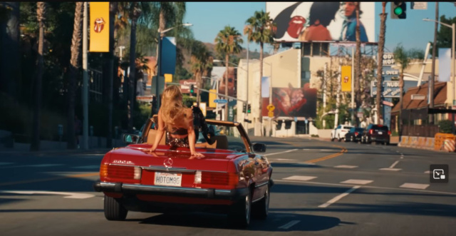 PS. Im übrigen, uns ist zugetragen worden, dass der rote Mercedes kein Zufallsprodukt in diesem Video ist. Nein, es handelt sich um klassisches Productplacement, mit einer klassischen Baureihe aus den besten SL-Jahren und einem dicken 5,6 LIter-Achtzylinder. Dem größten Motor, der in der Baureihe 107 verfügbar war. I know it's only rock 'n' roll but I like it