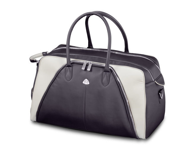 Die Reisetasche im Weekender-Format trägt den Namen „THE JAUNT I“ und deutet in ihrer Formgebung die legendäre Form des Maybach Logos an. Die Tasche besteht aus zwei großen, weiter unterteilten Reißverschlussfächern.