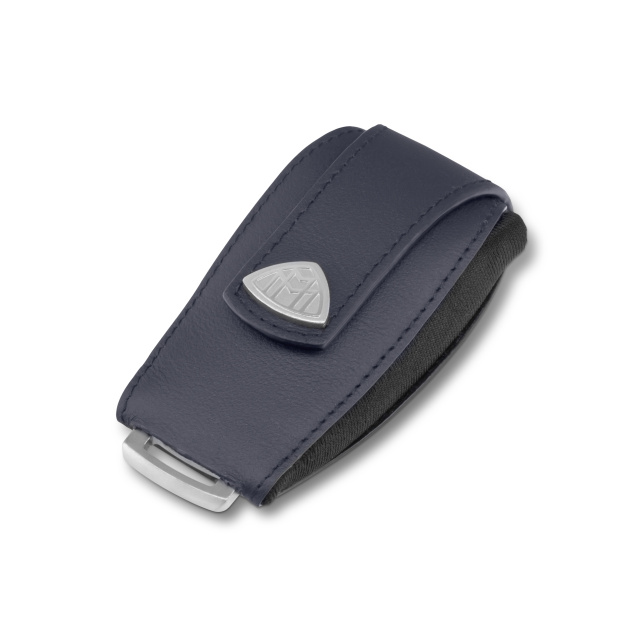 Das Schlüsseletui „THE COCOON I“ ist auf die Form des Fahrzeug-Schlüssels abgestimmt und besteht aus Fahrzeugleder im passenden Farbton. Den Druckknopf ziert ein Maybach Doppel-M-Logo.