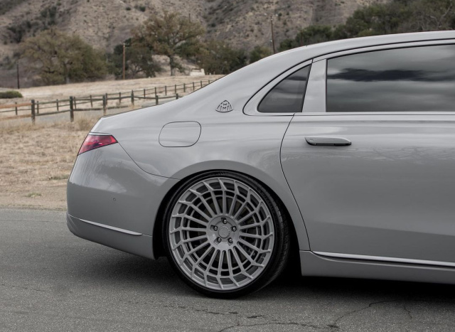 Werksseitig kam der Mercedes-Maybach in Schwarz zu ihr. Schwarz getönt sind abe rnur noch die Scheiben. Alles an dem Exterieur inklusive dem Chrom-Bling ist jetzt aber komplett ergraut. Die neue Farbgebung geschah nicht durch Folierung, sondern mittels einer neuen Lackierung. Die bemerkenswerte Maybach-Grauzone wird übrigens mit Dual Block SRX06 Räder in 22 Zoll abgerundet.