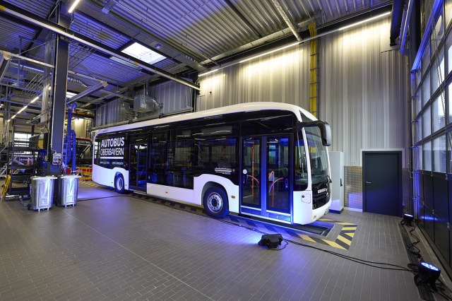 Zudem ist in Aschheim ein hochmoderner, variabel anpassbarer Arbeitsplatz entstanden, um an den Dächern von Fahrzeugen – am Lkw-Fahrerhaus oder Omnibusdach – zu arbeiten. Dieser sogenannte Dacharbeitsplatz ist insbesondere für den elektrischen Stadtbus Mercedes-Benz eCitaro relevant, da er seine Batterien auf dem Dach trägt.