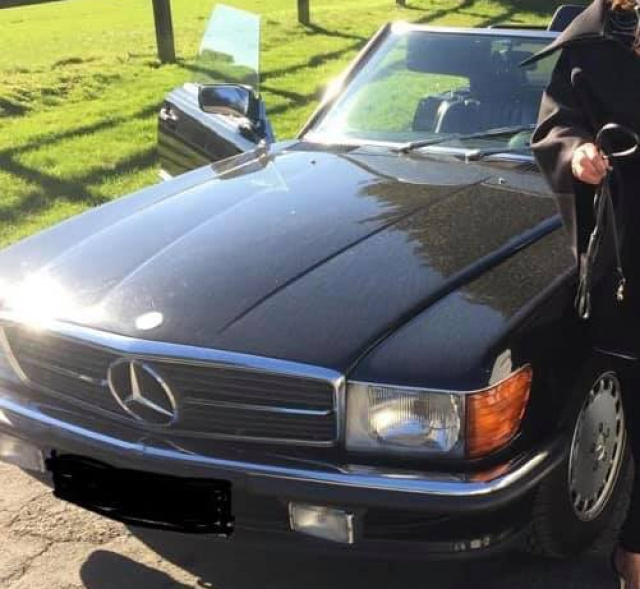 Das Fahrzeug ist schwarz mit schwarzes Leder im Interieur. Die Fahrgestellnummer lautet WDB1070411A097106.