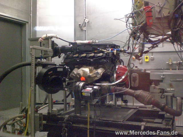 Nur noch ein paar Monate dann ist es soweit, der Mercedes SLS AMG wird offiziell das Licht dieser Autowelt erblicken. Im Moment laufen in Affalterbach nicht nur die Abgasrohre des neuen SLS-Motors heiß. Wir konnten für Sie einen Blick in die heiligen Hallen der Manufaktur und auf den Prüfstand werfen, auf dem ein SLS Treibsatz einen letzten Härtetest hinter sich bringen musste. Welchen er mit Bravour bestand. Rund 412kW (560PS) bei 6900 U/min Maximaldrehzahl zeigte die Leistungsmessung auf dem AMG Prüfstand am Ende.