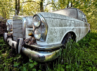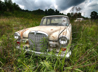 Interieurs und Stillleben, Landschaftsstudien mit verblassend bunten Rostbeulen als seltsamem Dekor: Das merkwürdigste ist, dass man den Eindruck gewinnt, dass diese Autos sich auf eine rätselhafte Weise den Landschaften angeglichen haben, sie gehören dort eigentlich nicht hin und passen doch genau hinein. Auch viele Mercedes-Modelle sind in diesem Bildband vertreten. Und immer wieder sind da auch Tankstellen, die irgendwo im Nirgendwo vergammeln, genau wie diese Autos, die keinen Sprit mehr brauchen. Ein berührendes Buch über einen bizarren Verfall.