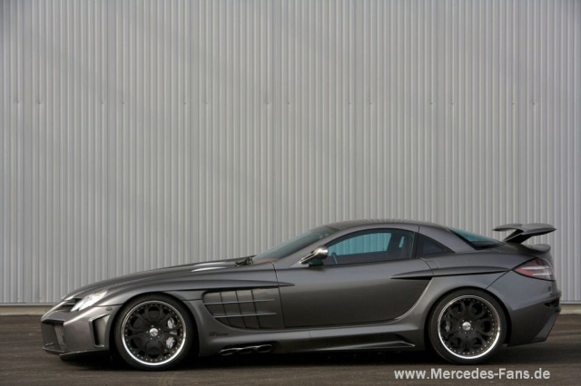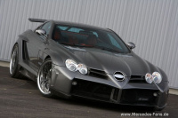FAB Design hat sich den Mercedes SLR vorgenommen und dem Boliden nochmals die Krallen geschärft. Die neu designte Karosserie besteht aus stabilem und gleichzeitig sehr leichtem Karbon. An exponierten Stellen wird es durch eine einfache Klarlackierung sichtbar. Es wurden zudem neben den vorderen und hinteren Kotflügeln auch neue Seitenschweller mit Aussparungen für die seitlich mündende Hochleistungs-Sportabgasanlage konzipiert.