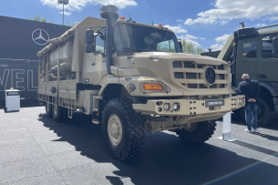 Die Rüstungsleitmesse „IDEX“ in Paris stand ganz im Zeichen von Putins Krieg gegen die Ukraine. Das Interesse an allen Ausstellungsstücken war riesig. So auch am Stand von Daimler Trucks.