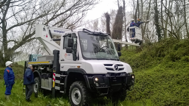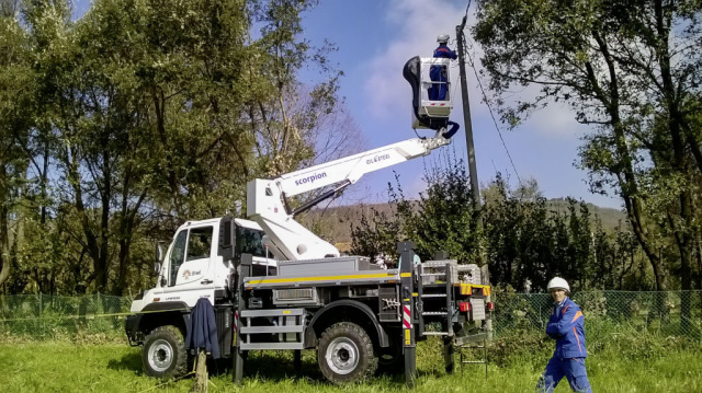 Geradezu prädestiniert für diese anspruchsvolle Aufgabe ist der Mercedes-Benz Unimog mit seinen überragenden Fahreigenschaften im Gelände. Die Portalachsen bringen hohe Bodenfreiheit, große Achsverschränkung und Differenzialsperren erlauben das Passieren extrem schwieriger Passagen. Dazu ist der Unimog U 218 sehr wendig, sein Wendekreis von 12,6 m entspricht Pkw-Format. Kurze Überhänge und günstige Böschungswinkel vorn und hinten erhöhen die Manövrierfähigkeit. So ist sichergestellt, dass Reparaturstellen im Enel-Netz zügig und zuverlässig erreicht werden. Sowohl am Einsatzort wie auch auf der Fahrt dorthin entlastet der Unimog den Fahrer unter anderem durch den ungehinderten Blick auf Fahrbahn und Gelände dank der modernen Freisichtkabine.
