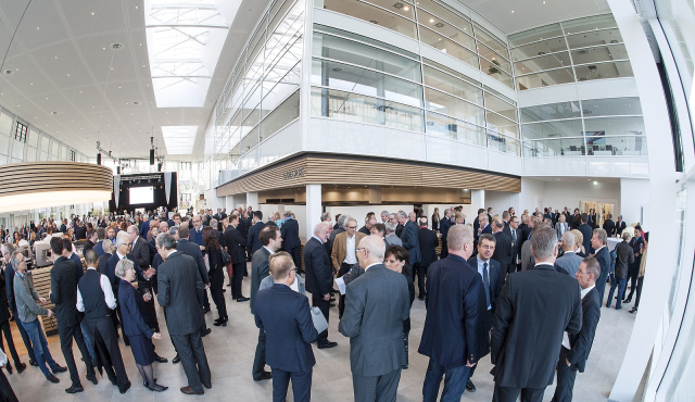 Zudem fand heute in der Messe Essen ein Festakt mit rund 500 geladenen Gästen aus Politik, Wirtschaft, Medien und der Messebranche statt, um den punktgenauen Abschluss der ersten Phase der Messe-Modernisierung zu feiern. Mit der Eröffnung des neuen, 2.000 m² großen Glasfoyers mit direkt anschließenden neuen Kongressräumlichkeiten erreicht das im Mai 2016 gestartete Bauprojekt seinen wichtigsten Meilenstein. Gleichzeitig geht die erste Hälfte der neuen, 11.000 m² großen Halle 6 mit direktem Blick in den Grugapark in Betrieb. NRW-Wirtschaftsminister Prof. Dr. Andreas Pinkwart gratulierte der Stadt und der Messe persönlich zu ihrer neuen architektonischen Landmarke.