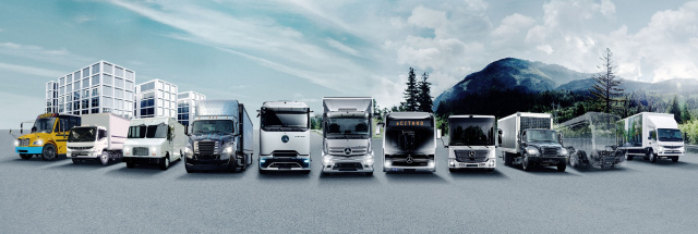 - Bei Daimler Truck sind weltweit elf batterie-elektrische Lkw- und Bus-Modelle in Serienproduktion, außerdem ein batterie-elektrischer Stadtbus mit ergänzender Brennstoffzelle für mehr Reichweite.