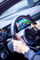 Das Tolle daran: Mit den Bedienelementen des CLA wird das Kart im Videospiel gesteuert. Gelenkt wird mit dem CLA. Die Funktion von Gas und Bremse übernimmt die CLA-Pedalerie. Alles, was MBUX steuern kann, bekommt in dem Spiel seinen Einsatz. So zeigt etwa der Wechsel der Ambientebeleuchtung von Rot auf Grün dem Fahrer den Start des Spiels an. Steigt die Geschwindigkeit des Karts, macht sich dies durch stärkeren „Gegenwind" aus den Lüftungsdüsen bemerkbar. Übrigens wird aus dem Spielspaß bald Ernst. Wie die Stuttgarter bereist angekündigt haben, werde man die MBUX-Plattform für Spieleentwickler öffnen. Binnen Jahresfrist sollen schon die ersten Spiele für MBUX verfügbar und als Download käuflich sein. Gezockt im Mercedes darf wie beim Tesla aber nur bei ausgeschaltetem Motor. Zumindest vorerst bzw. so lange noch ein Fahrer die Fahrfunktionen steuern bzw. überwachen muss. Aber schon bald werden die Insassen nur noch Passagiere sein. Das autonome Fahren kommt. Dann gibt es viel Zeit, Entertainment-Angebote im Auto zu nutzen. Und dann werden Kurzweil und gute Unterhaltung an Bord ein kaufentscheidendes Element sein. (Bilder: Daimler AG)