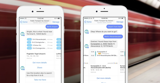 Um Nutzern jederzeit und überall Zugriff auf ein urbanes Mobilitätsnetzwerk zu ermöglichen, hat die moovel Group GmbH ihr Mobilitätsangebot auf die beiden Messenger-Dienste von Facebook und Slack ausgeweitet. Mit der Einführung des moovel Chatbot für den Facebook Messenger ermöglicht moovel ab sofort über einer Milliarde Facebook-Messenger-Nutzern den Zugang zu urbaner Mobilität direkt im Chat: Mit nur einem Klick kann der Nutzer seinen Aufenthaltsort an den Bot senden und bekommt sofort alle in der unmittelbaren Umgebung verfügbaren ÖPNV-Verbindungen angezeigt – ohne den Messenger zu verlassen. Darüber hinaus unterstützt der moovel Chatbot Nutzer dabei, von A nach B zu kommen und zeigt neben ÖPNV-Verbindungen auch verfügbare car2go Fahrzeuge als weitere Option an. Die Verbindungen kann der Nutzer mit seinen Freunden im Chat teilen. Der moovel Chatbot ist auf http://m.me/PublicTransportMoovel erreichbar und funktioniert sowohl im mobilen Facebook-Messenger auf iOS und Android als auch im Web.