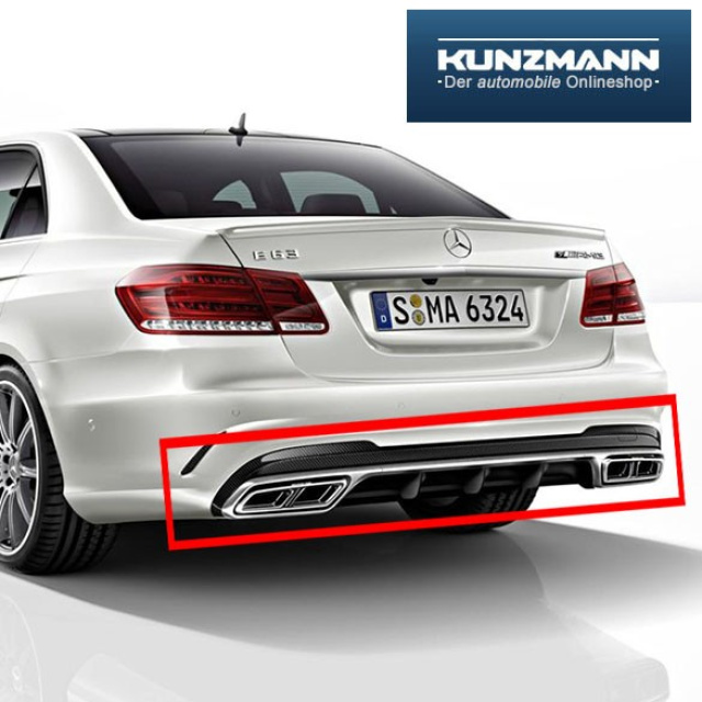 Für die modellgepflegte E-Klasse Baureihe bietet das Autohaus Kunzmann in seinem Onlineshop einen Heckdiffusor aus dem E63 AMG S-Modell an. Tauschen Sie den ab Werk verbauten Diffusor Ihrer E-Klasse W212 gegen den Diffusor aus dem E63 AMG - so verstärken Sie das sportliche Auftreten Ihrer E-Klasse (geeignet für T-Modell und Limousine).