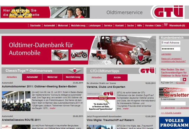 Ab sofort können Oldie-Fans über den Oldtimer-Service der GTÜ Gesellschaft für Technische Überwachung auf Kontaktdaten deutscher Oldtimervereine und Clubs zurückgreifen, die mit eigener Internetpräsenz für interessierte Oldtimer- und Youngtimer-Freunde direkt erreichbar sind. Unter dem Menüpunkt Vereine/Clubs auf der GTÜ-Oldtimerseite kann die neue Applikation aufgerufen werden. Derzeit sind alle bekannten Vereine und Clubs mit Internet- und E-Mail-Adresse gelistet, die in Deutschland ihren Vereinssitz haben und sich markenneutral oder markenspezifisch um klassische Fahrzeuge kümmern. Aktuell bietet der Oldtimerservice der Stuttgarter den direkten Draht zu über 1.000 Clubs und Einrichtungen, die mit ihren Experten und Typenreferenten geballtes Wissen zu den Fahrzeugmarken vorhalten.