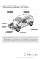 Die aktive Wankstabilisierung ACTIVE CURVE SYSTEM kann auf Wunsch sowohl mit der Luftfederung AIRMATIC mit adaptivem Dämpfungssystem (ADS) (Serie bei ML 500 4MATIC BlueEFFICIENCY) als auch mit dem ON&OFFROAD-Paket kombiniert werden. Das System arbeitet an der Vorder- und Hinterachse mit aktiven Querstabilisatoren und kompensiert den Wankwinkel des Aufbaus bei Kurvenfahrt. Dadurch steigen Agilität und Fahrspaß. Gleichzeitig erhöht das System die Fahrstabilität und damit die Sicherheit gerade bei höheren Geschwindigkeiten. Besserer Fahrkomfort sowohl in Kurven wie auf gerader Strecke und erweiterte Offroad-Möglichkeiten gehören ebenfalls zu den Vorzügen des ACTIVE CURVE SYSTEM.