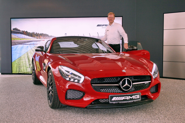 Matthias Orth, AMG Sales Expert, freut sich darauf, seine Kunden ab sofort im neu gestalteten AMG-Verkaufs- und Ausstellungsraum zu beraten. Für erstklassige Servicequalität und höchst persönlichen Service sorgt AMG Service Expert Steffen Hartmann.