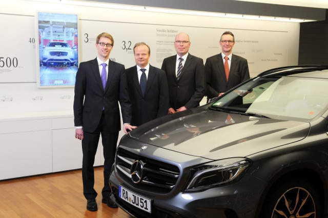 Einweihung des neuen Informationszentrums im Mercedes-Benz Werk Rastatt mit Werkleiter Stefan Abraham, Waldemar Epple und Volker Schulze-Permentier, Leiter Mercedes-Benz Kundencenter Sindelfingen und Rastatt und Olaf Dunkler, Montageleiter Werk Rastatt (v.l.n.r.).