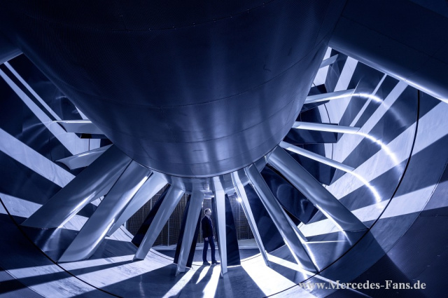 Mit dem über 70 Jahre alten Windkanal in Stuttgart-Untertürkheim verfügte Mercedes-Benz als erster Automobilhersteller über einen Windkanal. Mit dem neuen Aeroakustik-Windkanal im Entwicklungszentrum Sindelfingen setzt sich das Unternehmen wieder an die Spitze des aerodynamischen Versuchs.