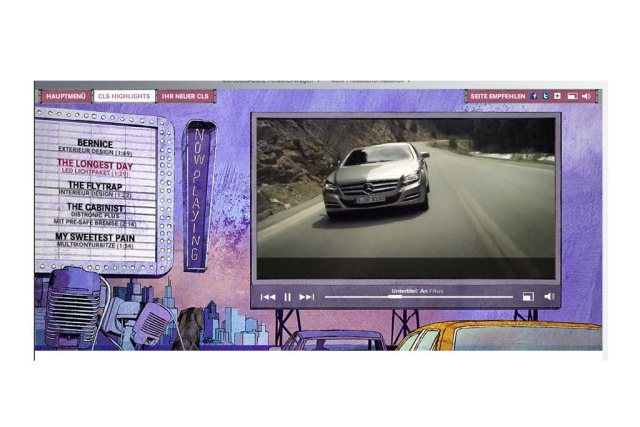 über TV- und Hörfunkspots, PreRoll Ads, interaktives Internetspecial und iPad App bis hin zu Handels- und Dialogmarketingaktivitäten. Sie setzt den CLS in purpurfarbener, urbaner Umgebung markant in Szene und untermauert selbstbewusst sowie authentisch seinen Führungsanspruch im Segment der viertürigen Coupés.