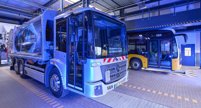 Der Neubau ist von Beginn an auf die Zukunft des Transportwesens hervorragend vorbereitet: So wurden beispielsweise Hochvolt-Arbeitsplätze eingerichtet, um batterieelektrische Modelle wie die Mercedes-Benz Lkw eActros und eEconic, den FUSO eCanter sowie den Stadtbus Mercedes-Benz eCitaro im Service bedienen zu können. Zudem ist in Stuttgart ein hochmoderner, variabel anpassbarer Arbeitsplatz entstanden, um an den Dächern von Fahrzeugen – am Lkw-Fahrerhaus oder Omnibusdach – zu arbeiten. Dieser sogenannte Dacharbeitsplatz ist insbesondere für den elektrischen Stadtbus Mercedes-Benz eCitaro relevant, da er seine Batterien auf dem Dach trägt.