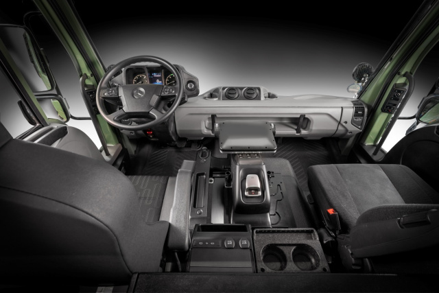 Der Unimog Low ist mit dem neuen Bediensystem UNI-TOUCH ausgestattet. UNI-TOUCH macht das Handling von Anbaugeräten effizienter und komfortabler und unterstützt bei der intuitiven Bedienung des Fahrzeugs. Über einen Touchscreen können Anwender die passenden Einstellungen für den jeweiligen Arbeitseinsatz vornehmen, Tasten individuell mit Funktionen belegen oder wiederkehrende Abläufe unkompliziert speichern und abrufen. Außerdem kann der optionale Multifunktions-Joystick jetzt je nach Arbeitssituation wahlweise in die Vorbereitung am Fahrersitz oder am Beifahrersitz eingesteckt werden. UNI-TOUCH ist in acht der ausgestellten Unimog Geräteträgern verbaut und kann bei Live-Präsentationen erlebt werden.